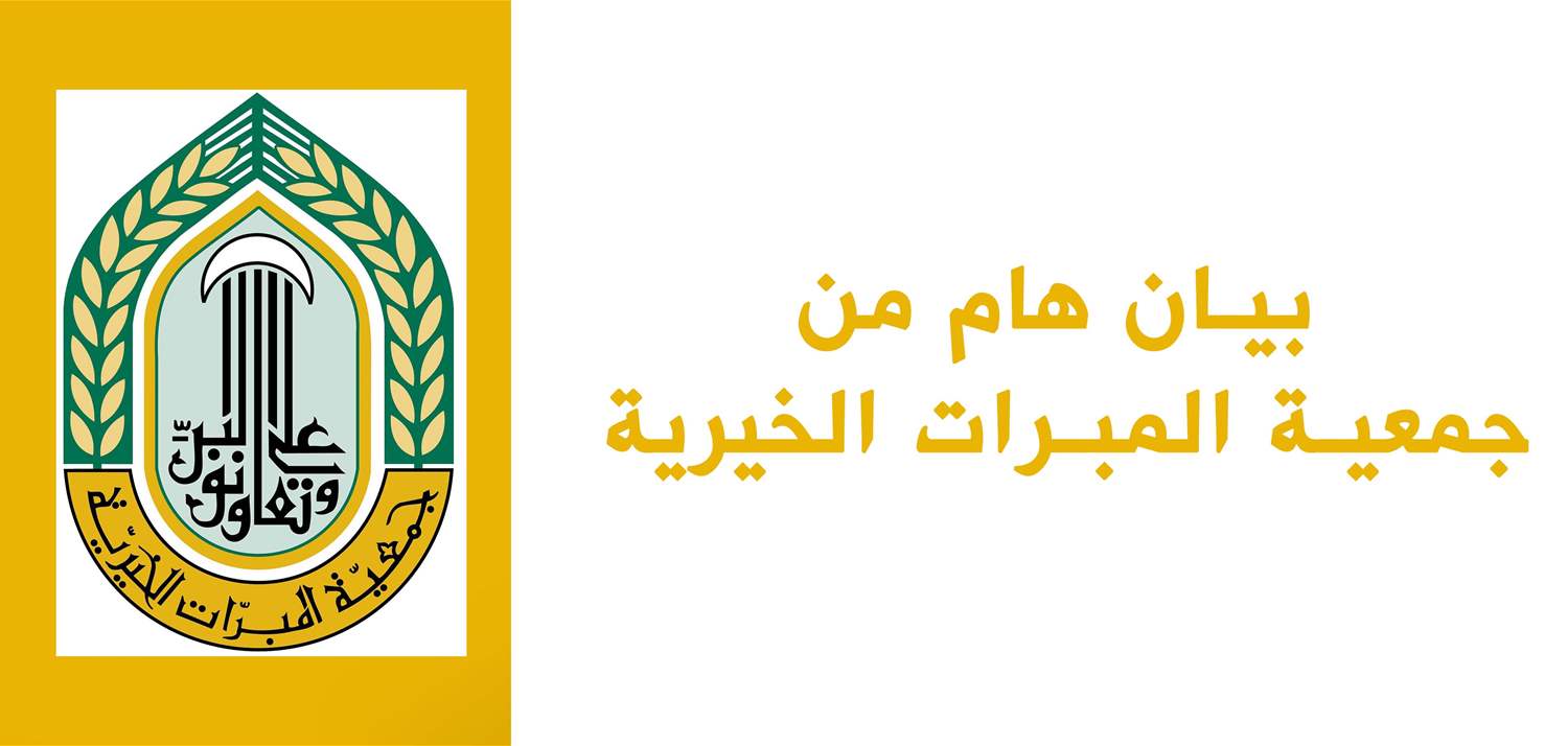 بيان رسمي صادر عن جمعيّة المبرّات الخيريّة