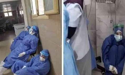 وبدا طاقم التمريض في الفيديو الذي تبلغ مدته 45 ثانية، بين من يحاول إنعاش المرضى ومن يعاني حالة انهيار.