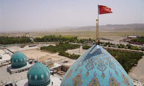 رفع علم الانتقام باللون الأحمر فوق قبة مسجد جمكران