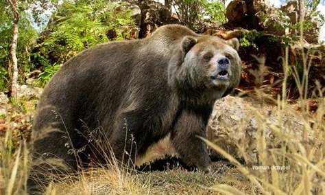 البيسون. وكان حجم دب الكهوف مماثلاً تقريباً للدب القطبيّ، لكنَّه كان فقط من الحيوانات آكلة العشب. وظهرت رسوم تصوّره على جدران الكهوف التي تعود إلى عصر ما قبل التاريخ.