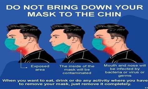 ونشرت خدمة الإسعاف East Midlands البريطانية، رسما بيانيا مفيدا يوضح المشكلة، وكتبت: "يساعد هذا الرسم على شرح أهمية عدم سحب الكمامة إلى ذقنك".